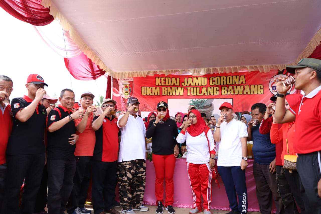 Begitu pula di Kabupaten Tulangbawang, saat kunjungannya ke-Kecamatan Banjar Agung dalam rangka memonitoring 25 program unggulan pro-rakyat di Kampung-kampung, Bupati Tulangbawang Hj. Winarti SE MH bersama-sama masyarakat mengkampanyekan minum jamu tradisional sebagai cara meningkatkan kekebalan tubuh dan cara sehat secara alami.