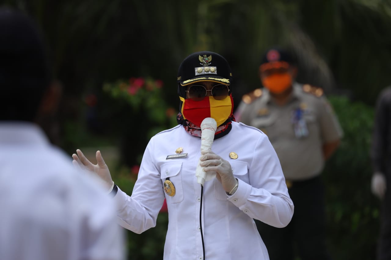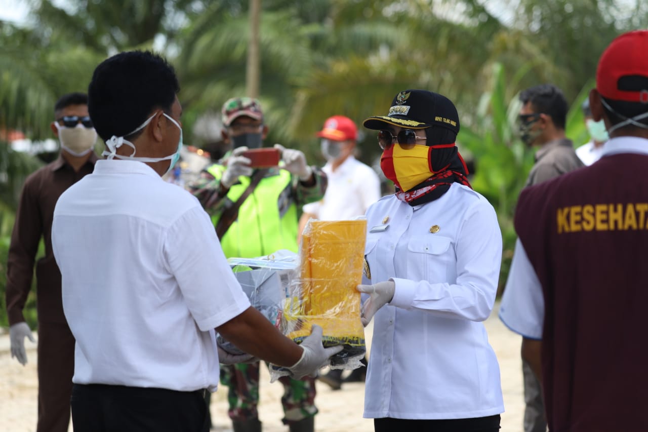 Saat menyerahkan bantuan didampingi Anggota Forkopimda dan sejumlah Pejabat Pemkab Tulang Bawang, Bupati Winarti juga memberikan penekanan kepada Camat dan Kepala Kampung agar lebih intensif dan masif dalam menghimbau dan mengajak masyarakat mencegah penyebaran virus corona.