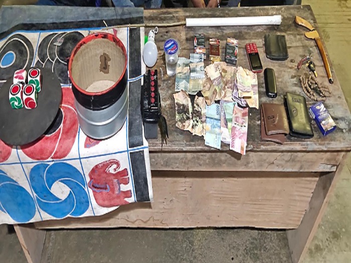 Dan barang bukti yang berhasil diamankan dilokasi seperangkat alat judi koprok, aki + lampu untuk penerangan, satu klip yang diduga bekas pakai sabu serta kendaraan roda dua.