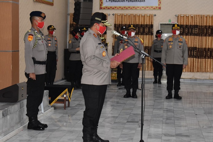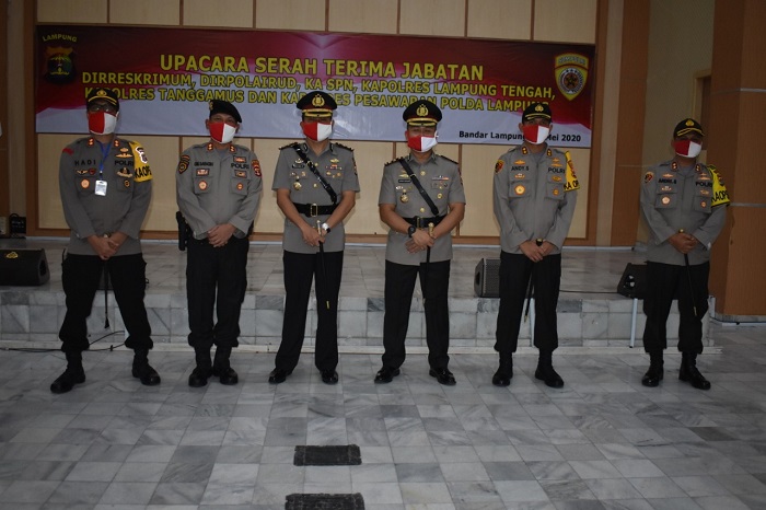 LAMPUNG TENGAH. Bangkitnusantara.com. — Kapolda Lampung Irjen Pol Drs. Purwadi Arianto M.Si., pimpin langsung sertijab Dirreskrimum Polda Lampung, DirPolairud Polda Lampung, Ka SPN Kemiling Polda Lampung, Kapolres Lampung Tengah, Kapolres Tanggamus dan Kapolres Pesawaran. Kamis, 14 Mei 2020.