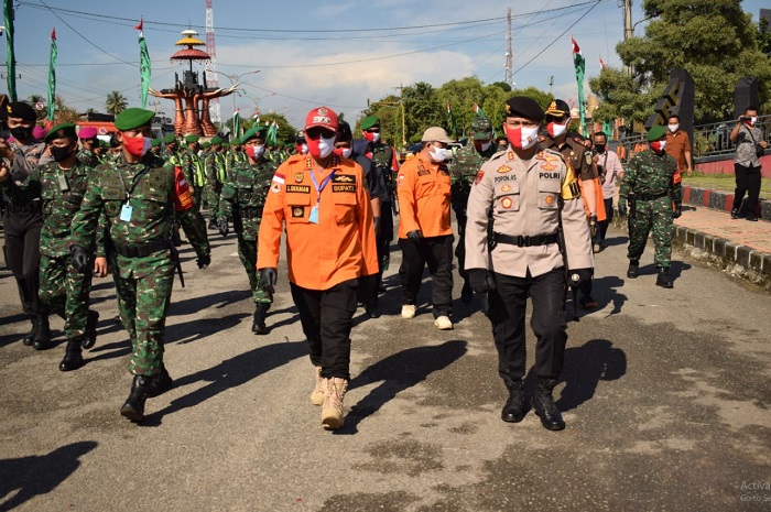 LAMPUNG TENGAH.Bangkitnusantara.com. — Pelaksanaan Apel Skala Besar Kabupaten Lampung Tengah dalam rangka penanganan pandemi Covid-19 bersama TNI-POLRI, Dishub, BPBD Kab. Lampung Tengah, Dinas Kesehatan, Gugus Tugas Covid-19 tingkat Kecamatan dan Kampung Kabupaten Lampung Tengah, Ditugu Pepadun Gunung Sugih Lampung Tengah, Senin (02/06/2020).