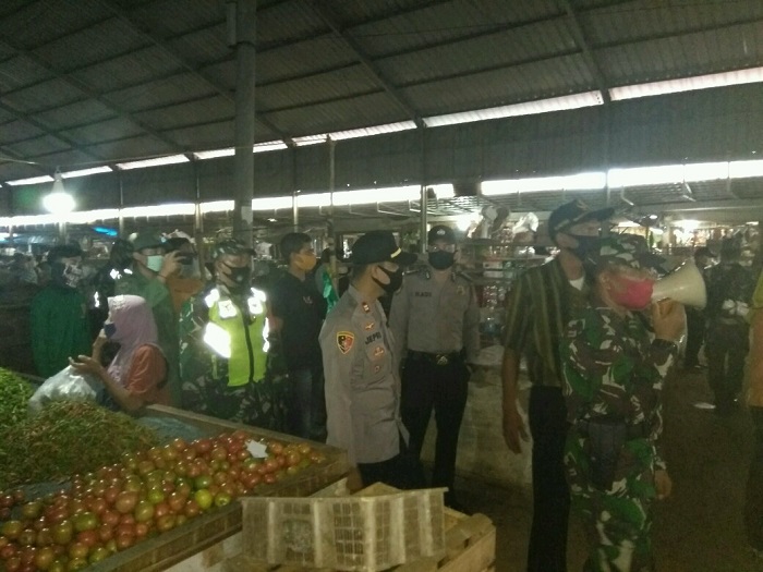 LAMPUNG TENGAH. Bangkitnusantara.com. — setelah memimpin apel Iptu Jepri Syaifullah, SH bersama Camat Seputih Mataram, Danramil 411-10/SM, melaksanakan himbauan New Normal Protokol Kesehatan Covid-19, di Pasar Merapi dan Pertokoan Seputih Mataram Lampung Tengah, Kamis (04/06/2020).