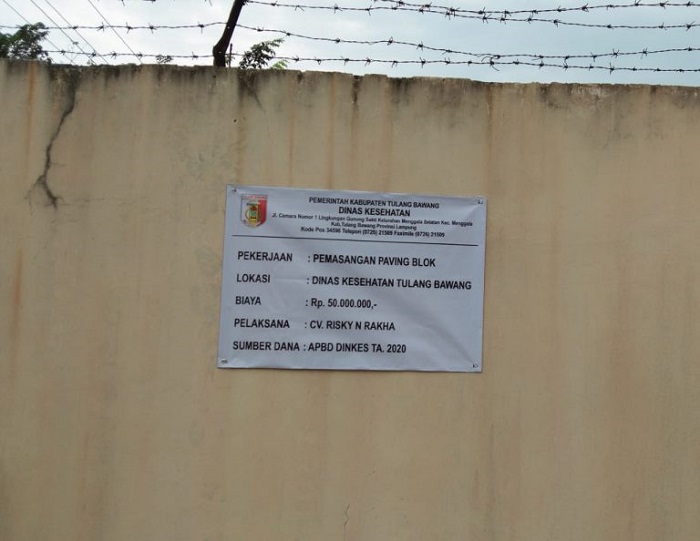 Disinggung mengenai pembangunan paving block di Dinas Kesehatan, Lasmini menjelaskan bahwa proyek tersebut merupakan hasil refocusing anggaran yang telah direncakan tahun 2019 dengan pendanaan bersumber dari anggaran pendapatan dan belanja daerah ( APBD) tahun 2020 melalui metode penunjukan langsung kepada pihak ketiga yaitu CV. Risky dan Rakha, dengan nilai pagu anggaran sebesar Rp. 50.000.000,- (Lima puluh juta rupiah).