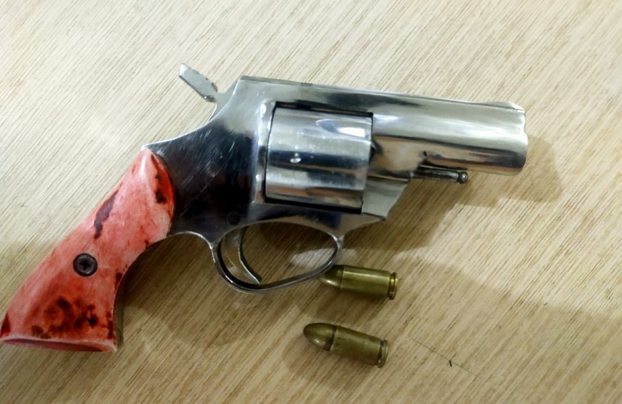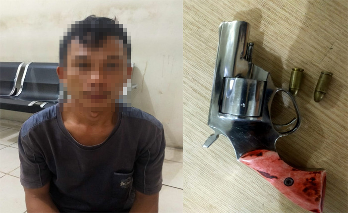 Setelah bertemu dengan orang yang dimaksud, petugas langsung melakukan penggeledahan badan dan ditemukan sepucuk senpi rakitan jenis revolver warna silver dan bergagang merah yang diselipkan di pinggang sebelah kirinya, yang mana di dalam silinder senpi tersebut terdapat dua butir amunisi aktif call 9 mm.