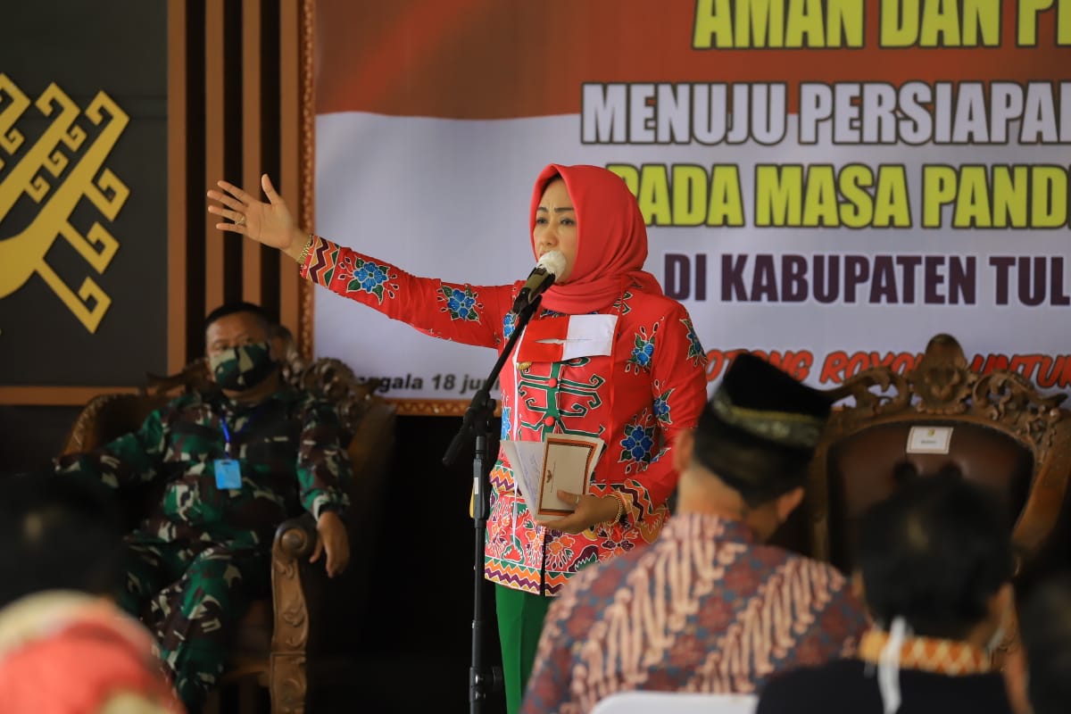 “Tugas kita bersama untuk menyampaikan kepada keluarga, saudara dan masyarakat. Ini masalah kebiasaan, merubah kebiasaan, kita harus ikuti protokol kesehatan. 7 sektor yang harus fokus, perkantoran, swalayan, pasar tradisional, tempat wisata, hotel, rumah makan dan fasilitas umum,” ungkap Bupati Winarti.