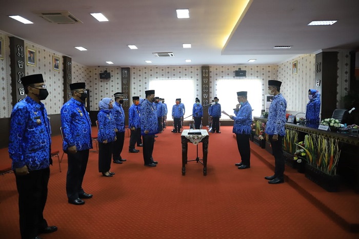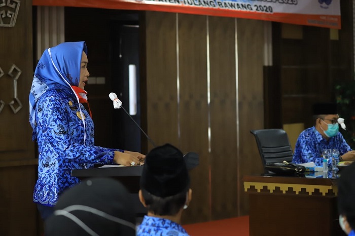 TULANG BAWANG. Bangkitnusantara.com. —Bupati Tulang Bawang (Tuba) Hj. Winarti SE. MH., menghadiri Pengukuhan/Pelantikan Dewan Pengurus KORPRI Periode 2020-2025, di RRU Lantai 2 Pemda setempat, Kamis (25/6/2020).
