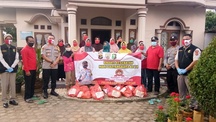 Rangkaian kegiatan baksos ini diselenggarakan serentah dijajaran Polres Lampung Tengah dalam menyambut Hari Bhayangkara Ke-74 Tahun yang jatuh pada tanggal 1 Juli 2020 pekan depan, baksos yang diberikan berupa sembako berupa Beras, Mie Instan, Minyak goreng, Gula Pasir, Kecap Manis, Masker, Handsanitazer dan Multivitamin dengan jumlah 2200 Paket.