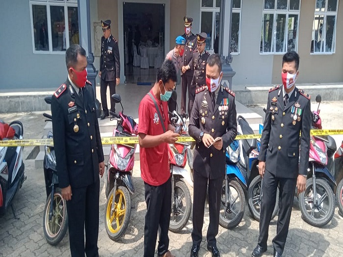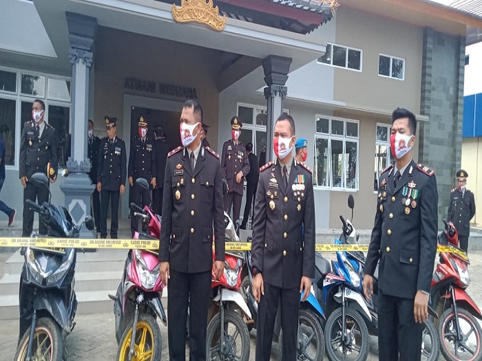 Kegiatan penyerahan barang bukti delapan unit sepada motor dihadiri juga oleh Wakapolres Kompol Suparman, Kabag Ops Kompol Juli Sundara, dan Kasatreskrim AKP Yuda Wiranegara.