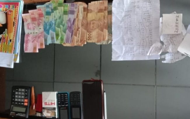 Ipda Eko Sujarwo mengatakan, dari lokasi turut diamankan barang bukti berupa satu lembar rekapan judi togel, dan empat buah buku, satu buah pulpen.