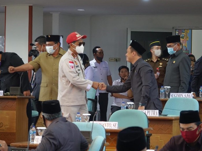 LAMPUNG TENGAH. Bangkitnusantara.com — DPRD Lampung Tengah (Lamteng) menggelar rapat paripurna persetujuan bersama Rancangan Peraturan Daerah (Raperda) tentang Laporan Pertanggungjawaban Pelaksanaan APBD (LPPA) Tahun 2019, di gedung dewan setempat, Rabu (8/7/2020).