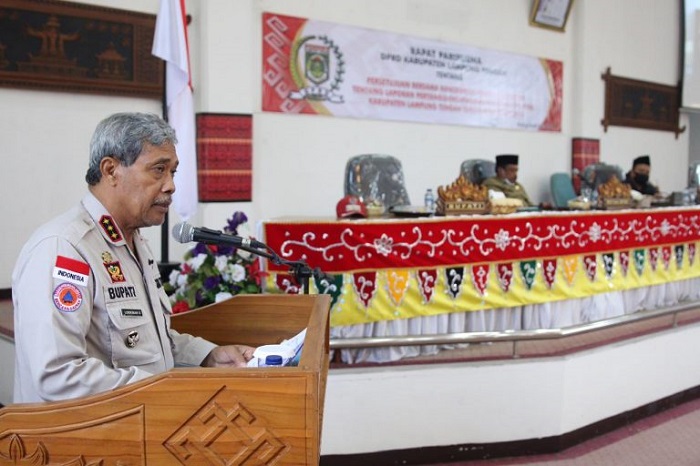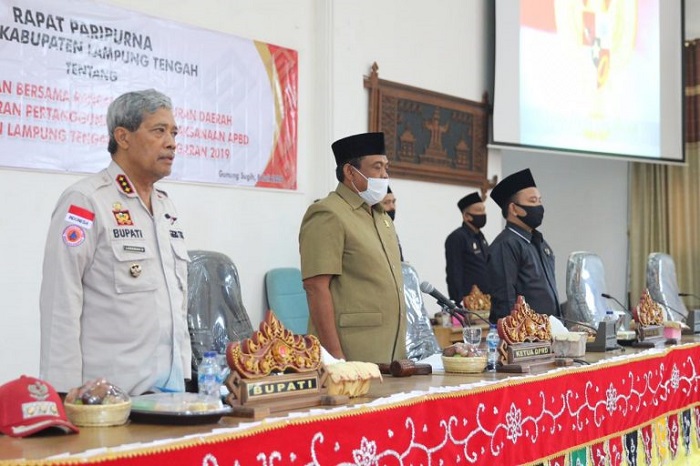 Rapat paripurna dipimpin langsung Ketua DPRD Lamteng Sumarsono, didampingi Wakil Ketua III Muslim Anshori, para Anggota Dewan dan Sekretaris DPRD Syamsi Roly. Turut hadir pula Bupati Lamteng Loekman Djoyosoemarto, di dampingi Pj. Sekretaris Daerah (Sekda) Hanibal, para Asisten dan Staf Ahli Bupati, para Kepala Dinas, Bagian dan Bidang, serta Jajaran Forkopimda setempat.