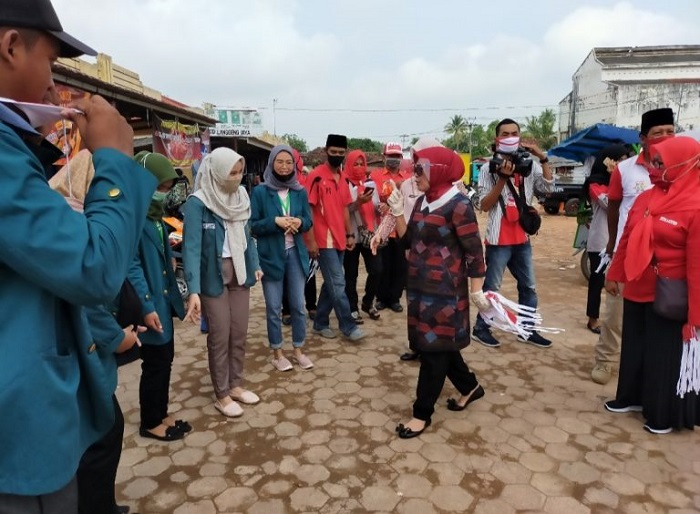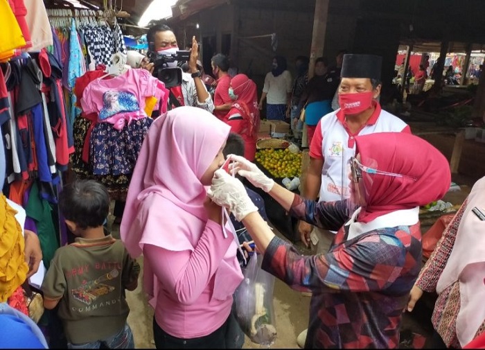 “Jadi penerapan New Normal ini bukan berarti kita sudah terbebas dari Covid-19. Tapi kita dianjurkan pemerintah untuk menjalankan protokol kesehatan seperti mengenakan masker, selalu jaga jarak dan rutin mencuci tangan pakai sabun dalam menghadapi tatanan kehidupan baru atau New Normal,” terang Hj. Ellya kepada masyarakat.