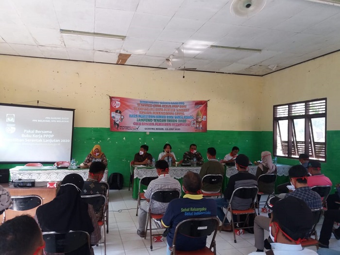 Bhabinkamtibmas Briptu Septian Dwi Cahyo juga menyampaikan Pesan Kamtibmas atas tersenggaranya Rakor dan Bimtek PPS Tentang Cara Kerja PPDP dan Rekapitulasi Suara Pada Pilbup dan Wabup Kab Lampung Tengah Tahun 2020 oleh PPK Kec Gunung Sugih, pesan Kapolres Lampung Tengah AKBP Popon Ardianto Sunggoro, S.Ik., S.H, melalui kapolsek Gunung Sugih Iptu Des Herison Syahputra, S.IP. MH agar kegiatan harus di laksanakan sesuai himbauan pemerintah dengan mengikuti Protokol kesehatan Covid-19.