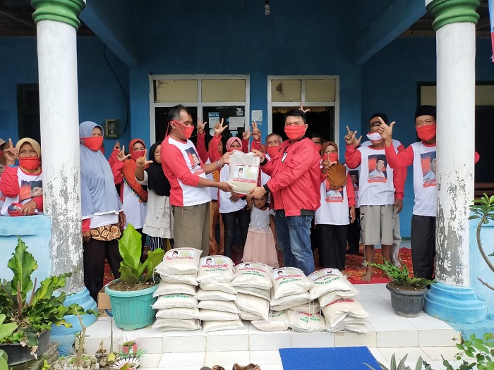 Bantuan beras diserahkan langsung oleh Ketua Relawan Loekman, Hidayat, yang didampingi oleh tim pengurus Kecamatan Punggur, Suradi.