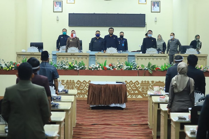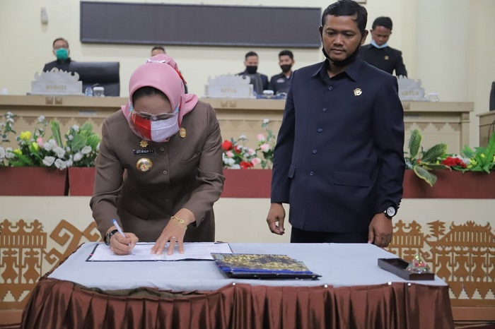 Tulang Bawang, Bangkitnusantara.com — Bupati Tulang Bawang Hj. Winarti SE MH, menghadiri dan mengikuti sidang Paripurna DPRD Tulang Bawang pembicaraan Tahap II terhadap Raperda tentang pertanggungjawaban pelaksanaan APBD Kabupaten Tulang Bawang Tahun Anggaran (TA) 2019 dan penandatanganan Nota Kesepakatan Kebijakan Umum Perubahan APBD dan Prioritas dan Plafon Anggaran sementara Perubahan APBD TA 2020, sekaligus penyampaian Nota Pengantar Raperda RAPBD Perubahan TA 2020, Selasa, (21/07/2020).