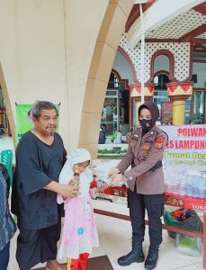 Mewakili Kapolres Lampung Tengah AKBP Popon Ardianto Sunggoro, S.Ik., S.H, Pakor Polwan Lampung Tengah AKP Hamsyiah bersama 35 Personil Polwan lainnya bahwa kegiatan Jum’at Berokah ini supaya mendekatkan Polwan dengan masyarakat.