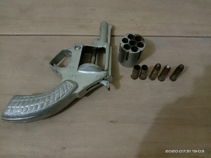 “Didapati satu unit senjata api rakitan jenis revolver warna silver yang berisi 3 (tiga) buah amunisi colt 38 aktiv, 2 (dua) buah selongsong, barang bukti tersebut di simpan pelaku di dalam tas miliknya,” lanjut Yopi.