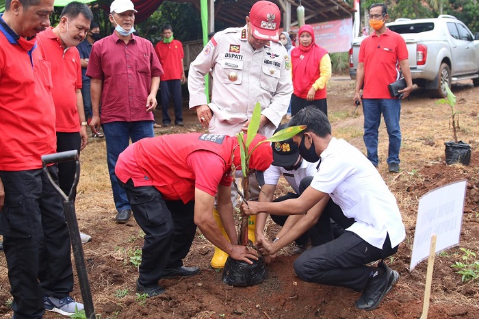 Lampung Tengah, Bangkitnusantara.com — Bupati Lampung Tengah (Lamteng) Loekman Djoyosoemsrto menghadiri acara tanam perdana pisang mas kirana kebun induk Kalirejo. Rabu 5 Agustus 2020. Pisang mas kirana memiliki ciri khas buahnya yang manis legit warna cerag keemasan dan tidak mudah busuk sehingga menjadi komoditas yang memiliki nilai ekonomi tinggi.