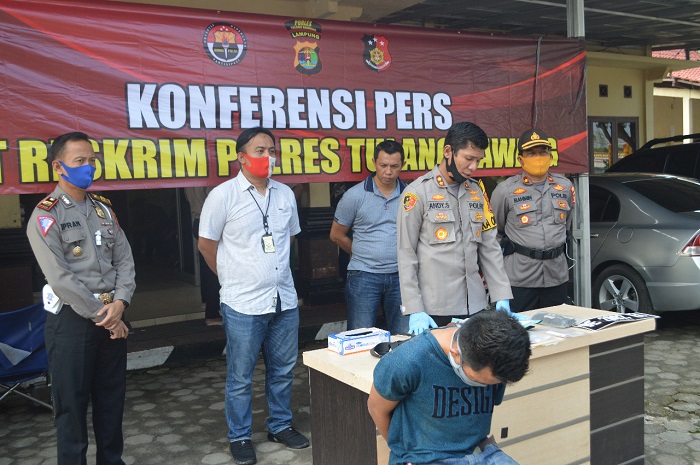 “Pelaku berinisial E als MI (28), berprofesi wiraswasta, warga Tiyuh/Kampung Candra Kencana, Kecamatan Tulang Bawang Tengah, Kabupaten Tulang Bawang Barat,” ujar AKBP Andy.