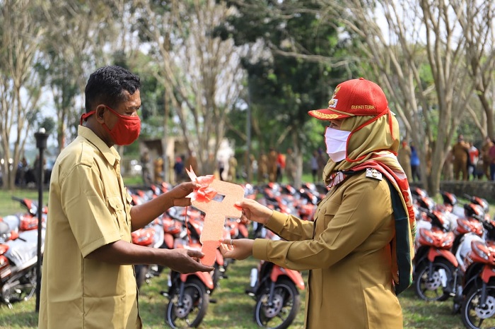 “Bantuan Sepeda Motor untuk Kadus ini adalah realisasi 25 Program BMW, untuk mendukung kinerja Kadus dan Pemerintah Kampung dalam melayani rakyat,” kata Bupati Winarti.