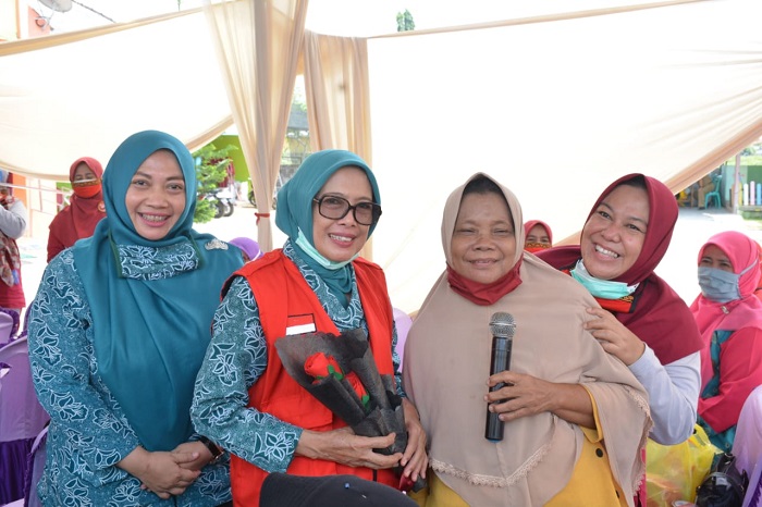 Usai bersilaturahmi, Hj. Ellya memberikan bantuan kepada 76 keluarga pasien ODGJ Kecamatan Bandar Mataram di Puskesmas Sriwijaya Mataram, dan Kecamatan Way Seputih di Puskesmas Suko Binangun. (Asp)