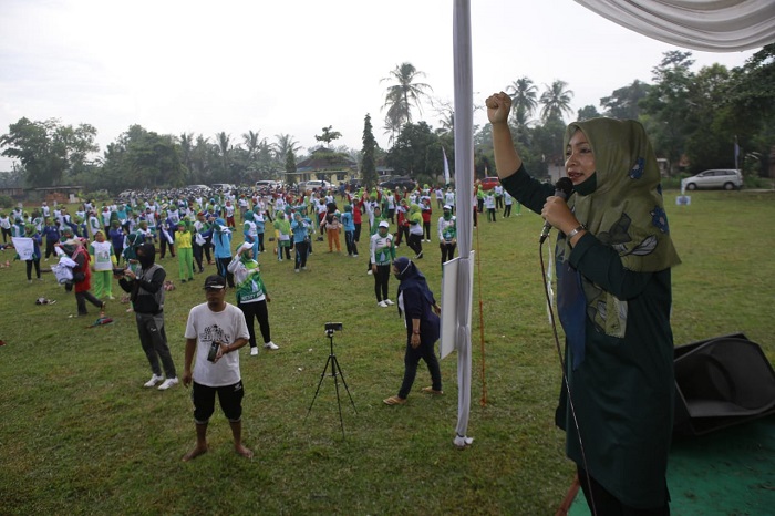 “Pagi ini, bunda berolahraga bersama masyarakat di Kecamatan Punggur. Kami mengikuti senam bersinar, meskipun sempat gerimis, tapi semangat masyarakat disini sangat luarbiasa dan patut untuk di apresiasi. Di masa pandemi ini, olahraga sangat perlu dilakukan untuk menjaga stamina dan kesehatan tubuh,” ujar Calon Bupati yang akan berpasangan dengan KH. Imam Suhadi.