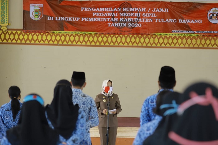 Tulang Bawang, Bangkitnusantara.com — Bupati Tulang Bawang Hj.Winarti S,E.M.H Mengambil Sumpah Jabatan PNS di wilayah Pemerintahan Tulang Bawang pada Senin Tanggal (24-08–2020) Bertempat di GSG menggala.