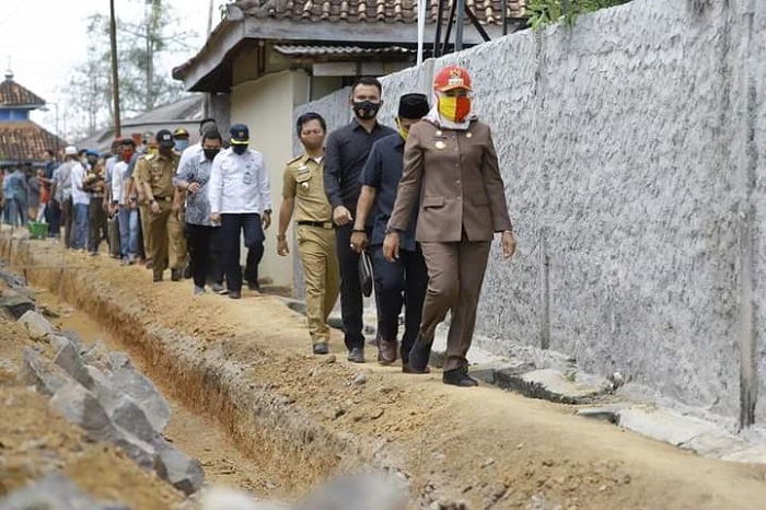 Hal ini ditandai dengan peletakan batu pertama oleh bupati Tulang Bawang Winarti sebagai tanda dimulainya kegiatan progra BPM KOTAKU. Senin,(24/8/2020).