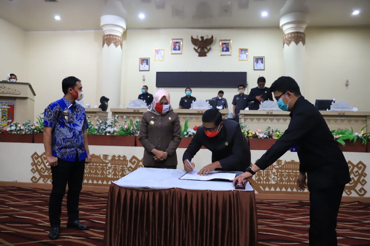 Tulang Bawang, Bangkitnusantara.com — Bupati Tulang Bawang Hj Winarti SE MH bersama Dewan Perwakilan Rakyat Daerah (DPRD) Kabupaten Tulang Bawang sahkan RKUA dan PPAS APBD TAHUN 2021 serta pembicaraan tingkat 1 atas Raperda Kabupaten Tulang Bawang tentang APBD Tahun 2021, (29-09-2020)