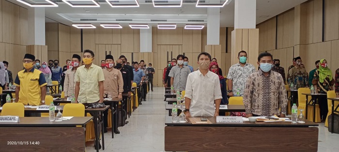 Lampung Tengah, Bangkitnusantara.com – Personil Polres Lampung Tengah yang dipimpin oleh Kasat Sabhara Akp Zulkifli Rusli, SE melakukan Pengamanan dalam Rapat Pleno Terbuka Rekapitulasi Daftar Pemilih Sementara Hasil Perbaikan (DPSHP) dan Penetapan Daftar Pemilih Tetap (DPT) oleh KPU Lampung Tengah dalam rangka Penyelenggaraan Pemilihan Bup/ Wabup Lampung Tengah Thn 2020, di lokasi Aula Hotel BBC Bandar Jaya Kec Terbanggi Besar Lampung Tengah, Kamis (14/10/2020).