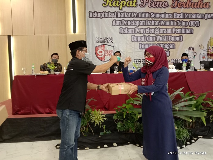 Dalam kegiatan rapat Pleno dihadiri oleh Ketua KPU Kab Lampung Tengah Irawan Indra Jaya, S.Km,. Komisioner KPU Kab. Lampung Tengah,.Komisioner Bawaslu Kab. Lampung Tengah Kordiv Pengawasan Edwin Nur, S.E,. Kepala Kesbangpol Kab. Lampung Tengah yang diwakili oleh Sdr. Herman,.Kepala Disdukcapil Kab. Lampung Tengah yang diwakili oleh Sdri. Laola Fitri,. Seluruh ketua dan anggota PPK Se Kab Lampung Tengah yang hadir + 56 Orang,. LO Paslon No 1 (Merah Putih) Heni Yuliani,. LO paslon No 2 (Berjaya) Hi. Maksum,.LO Paslon No 3 (Bersinar) Ardy Junaidi.