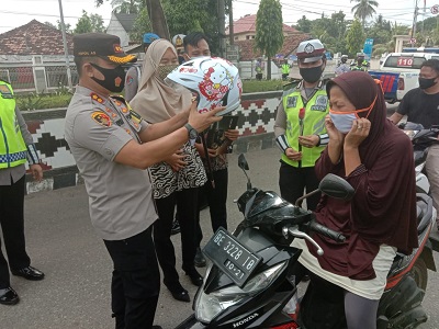 Kasat Lantas AKP M Yani Endang, S.Ik bersama personilnya turun Langsung kepada Masyarakat yang melintas apabila tertib berlalu lintas diberikan hadiah berupa Masker, bunga serta Kartu ucapan sticker apresiasi kepada pengendara yang tertib berlalu lintas dan disiplin protokol kesehatan.