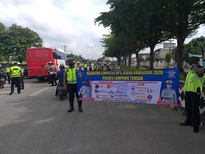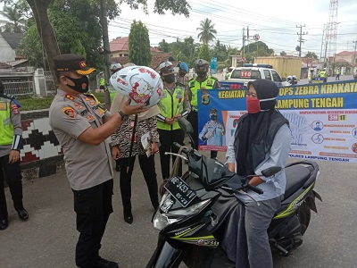 Lampung Tengah, Bangkitnusantara.com – Operasi Zebra Krakatau 2020 pagi ini agak berbeda dengan tahun sebelumnya, yaitu Sosialisasi diseputaran Masyarakat pengguna kendaraan di Jalinsum Gunung Sugih Lampung Tengah dan masyarakat di seputaran Taman Pepadun Gunung Sugih Lampung Tengah, Jum,at (30/10/2020)