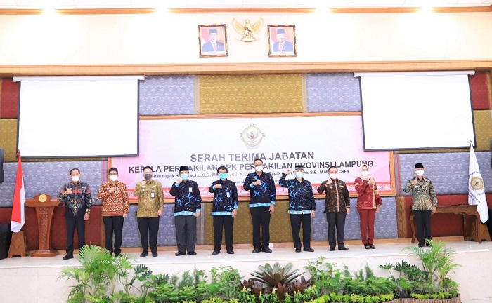 Adapun dalam serah terima Jabatan Kepala Perwakilan BPK Perwakilan Provinsi Lampung dari Bapak Hari Wiwoho SE MM Ak CSFA CA kepada Bapak Andri Yogama SE MM Ak CSFA turut hadir dalam undangan, Gubernur Lampung Ir. H. Arinal Djunaidi dan Anggota V BPK RI Prof. Dr. Bahrullah Akbar MBA CIPM CFSA CPA, serta Kapolda Lampung, Kajati, dan Bupati/Walikota di Provinsi Lampung.