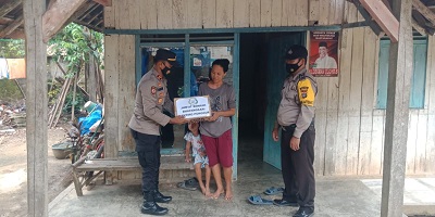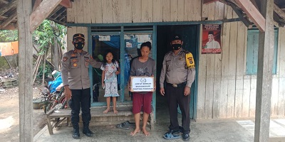Iptu Amsar didampingi Anggotanya Aiptu Hasanudin Bhabinkamtibmas, serta Aiptu Dedi Sukowati Bhabinkamtibmas Polsek Punggur memberikan bantuan berupa sembako berupa 1 dus berisi 2 kg gula pasir, 2 kg Minyak goreng, 2 bungkus Mie telur, 2 kg Terigu dan 1 kaleng susu.