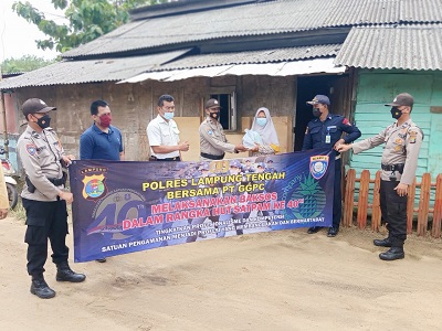 Personil yang terlibat Aiptu Afrizal PS. Kanit Bintibmas,. Aipda Anwar PS. Kanit Binpolmas,.Aipda Ferry Budi. S PS. Kanit Binkamsa serta Personil Satpam PT. GGF ( Great Giant Foods ) Lampung untuk membagikan bantuan berupa Memberikan Beras sebanyak 50 kg ukuran 10 Kg, minyak goreng 1 kg, mie Instan, kata Kurmen.