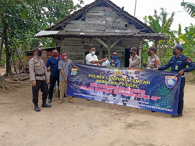 Lampung Tengah, Bangkitnusantara.com.— Bersama Anggota Binmas Polres Lampung Tengah dan Satuan Pengamanan (Satpam) PT GGF ( Great Giant Foods ) memberikan bantuan sembako kepada Keluarga yang kurang Mampu di Kampung Kecubung Kec Terbanggi Besar Kab Lampung Tengah Selasa (19/01/2021).