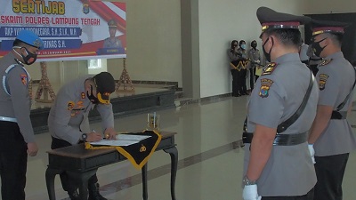 Serah terima Jabatan dihadiri Pejabat Utama Polres Lampung Tengah, Kapolsek jajaran Lampung Tengah Perwira Polres Lampung Tengah.