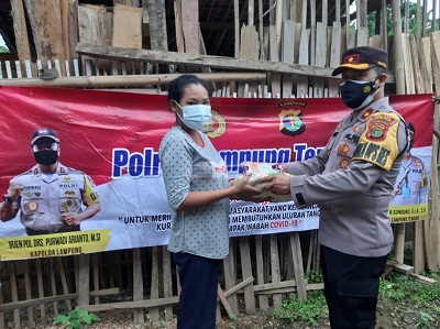 Lampung Tengah, Bangkitnusantara.com. — Kegiatan Waka Polres Lampung Tengah Kompol Suparman, S.Pd, M.Si dalam menyalurkan bantuan Beras dan gula kepada warga yang kurang mampu di Dsn.08 Rt.02 Rw.04 Kampung Bangunrejo Kec Bangunrejo Kab Lampung Tengah, Rabu (03/02/2021).