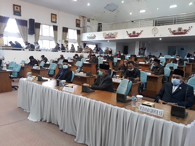 Kegiatan rapat paripurna DPRD Kabupaten Lamteng tentang pengumuman usulan berakhirnya masa jabatan kepala daerah Kabupaten. Lamteng tahun 2016 – 2021 dan pengumuman perubahan alat kelengkapan DPRD di Ruang Sidang DPRD Lampung Tengah.