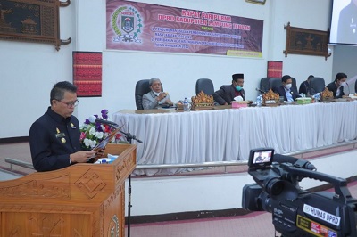 Lampung Tengah, Bangkitnusantara.com — Dewan Perwakilan Rakyat Daerah (DPRD) Lampung Tengah (Lamteng) menggelar Rapat Paripurna Tentang Pengumuman Usulan Berakhirnya Kepala Daerah Masa Jabatan 2016-2021, di Gedung Dewan setempat, Senin (8/2).