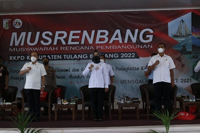 Tulang Bawang BangkitNusantara.com — Bupati Tulang Bawang (Ir. (Cand) Hj. Winarti, SE., MH) Membuka secara resmi Acara Musyawarah Rencana Pembangunan ( Musrenbang ) RKPD Kabupaten Tulang Bawang 2021dengan Tema Percepatan Pemulihan Ekonomi dan Kesehatan serta Peningkatan Kualitas SDM Menuju Tulang Bawang Aman, Mandiri dan Sejahter pada Rabu 10 Maret 2021 Gedung Serbaguna, Menggala.