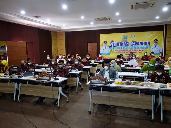 LAMPUNG TENGAH.Bangkitnusanara.com. — Bupati Lampung Tengah H Musa Ahmad S.Sos hadir dalam acara Verifikasi lapangan dalam rangka Anugrah Parahita Ekapraya (APE) . Acara berlangsung di ruang BJW Kompleks Rumah Dinas Bupati Lampung Tengah Sesat Agung Nuwo Balak, Kamis 18 Maret 2021. Bupati didampingi beberapa kepala OPD terkait di lingkungan Pemerintahan Kabupaten Lampung Tengah.
