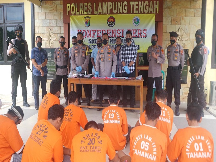 Kegiatan dipimpin Kapolres Lampung Tengah dengan didampingi oleh PJU Polres Lampung Tengah dan Rekan – rekan media, AKBP POPON ARDIANTO SUNGGORO, S.IK.,SH selaku Kapolres Lampung Tengah menyampaikan dalam kegiatan Rilisnya tersebut bahwa pencapaian Polres Lampung Tengah dalam Pelaksanaan Ops Antik Krakatau 2021 menempati peringkat pertama dalam keberhasilan ungkap kasus di jajaran Polda Lampung, dengan pengungkapan sebanyak 56 kasus dengan rincian yaitu 4 TO dan 52 Non TO, jumlah tersangka yang berhasil diamankan sebanyak 76 orang, dalam pengungkapan tersebut turut diamankan barang bukti berupa Tembakau Sintetis / Gorila sebanyak 93 Gram, Sabu – sabu sebanyak 81,03 Gram dan uang tunai sebanyak Rp 750.000,-“ jelasnya.