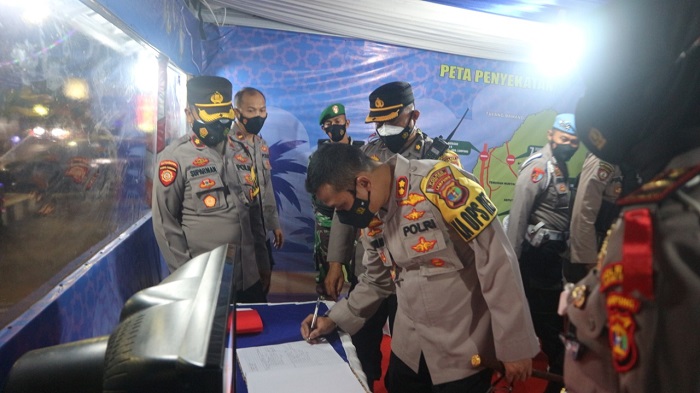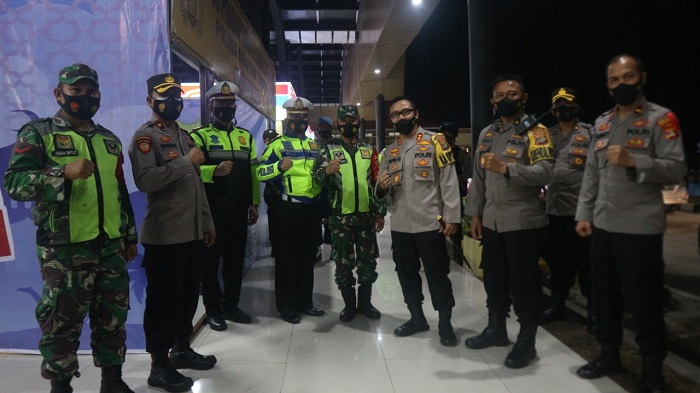LAMPUNG TENGAH. Bangkitnusantara.com. — Selesai buka puasa Kapolres Lampung Tengah AKBP Popon Ardianto Sunggoro, S.Ik., S.H. didampingi Waka Polres Lampung Tengah Kompol Suparman, S.Pd., M.Si. , Kabag Ops Polres Lampung Tengah Kompol Juli Sundara, Amd. dan Pejabat Utama Polres Lampung Tengah untuk memantau dan memonitoring kesiap siagaan personel dipos pelayanan, pos pantau, pos penyekatan dan pos pengamanan dalam rangka Ops Ketupat 2021 yang berada di wilayah hukum Polres Lampung Tengah dalam mengamankan Idul Fitri tahun 2021, Jumat (7/5/2021) pukul 20.00 WIB.
