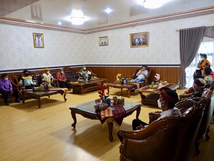 LAMPUNG TENGAH.Bangkitnusantara.com. — Bupati Lampung Tengah Musa Ahmad menerima kunjungan silaturahmi dari Parasida Hindu Dharma Indonesia (PHDI) Kabupaten Lampung Tengah yang di Ketuai oleh I Ketut Suwendra di Rumah Dinas Bupati Gedung Sesat Agung Nuwo Balak Gunung Sugih, Kamis (20/5/21).