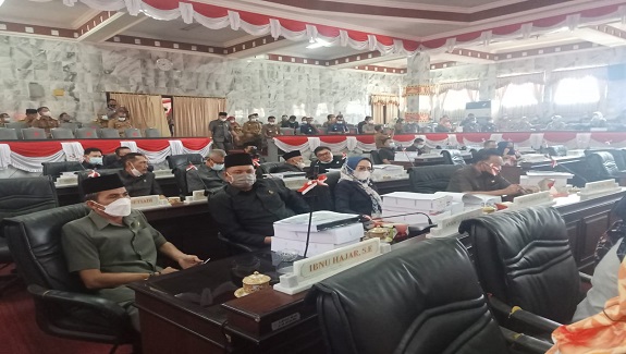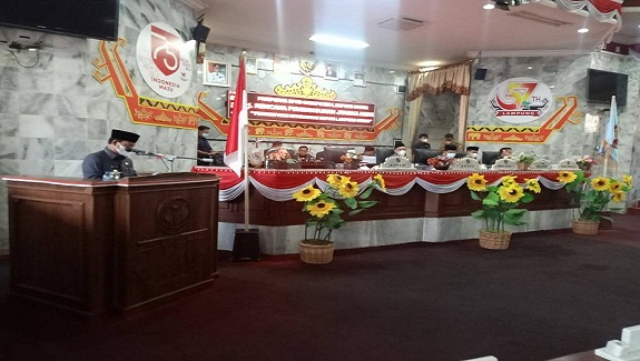 Bupati Lampung Utara juga menyampaikan RPJMD perubahan tahun 2019-2024 memuat sasaran strategi perencanaan pembangunan serah untuk mewujudkan masyarakat yang aman dan agamis. (Niko.Tedi)