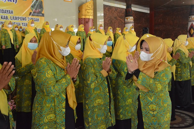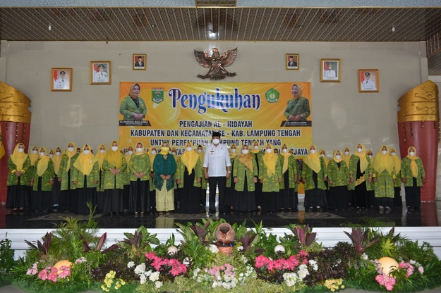 LAMPUNG TENGAH.Bangkitnusantara.com. — Bupati Lampung Tengah menghadiri acara Pengukuhan Pengajian Al-Hidayah Kabupaten dan Kecamatan Se-Kabupaten Lampung Tengah untuk perempuan Lampung Tengah yang religi, berkualitas, sehat, mandiri, berdaya dan berjaya di Sesat Agung Nuwo Balak. Rabu,(9/06/2021)