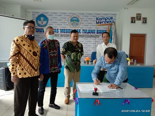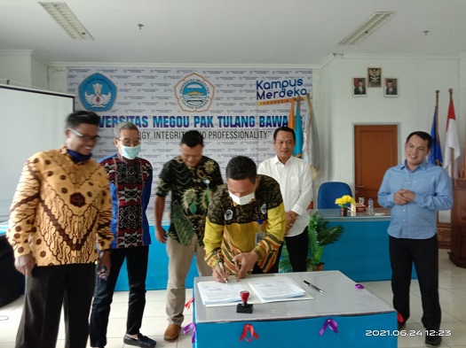 TULANG BAWANG.Bangkitnusantara.com. — Untuk memperkuat kerjasama perguruan tinggi dan organisasi kemasyarakatan, Universitas Megou Pak Tulang Bawang langsung tancap gas kerjasama dengan sejumlah lembaga penting. UMPTB berkonsep Synergy, Intregrity and Professionality, Kamis (24/6/2021), resmi menandatangani kerjasama dengan Ormas Pencinta Tanah Air Indonesia (PETANESIA) Provinsi Lampung. Kerjasama ini saling menguntungkan kedua belah pihak antara lain dalam rangka Tri Dharma Perguruan Tinggi (Pendidikan, Penelitian, dan Pengabdian Masyarakat), serta meningkatkan profesionalisme.
