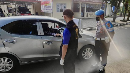 Kasi Propam Ipda Khairil Rizal, SH Mewakili Kapolres Polres Lampung Tengah AKBP Wawan Setiawan,S.Ik, didampingi Personil dari Poliklinik Polres Lampung Tengah bekerja sama melaksanakan Giat pengukuran suhu Tubuh dan pengawasan terhadap Personil dan Masyarakat yang memasuki Polres Agar selalu mematuhi protokol kesehatan.